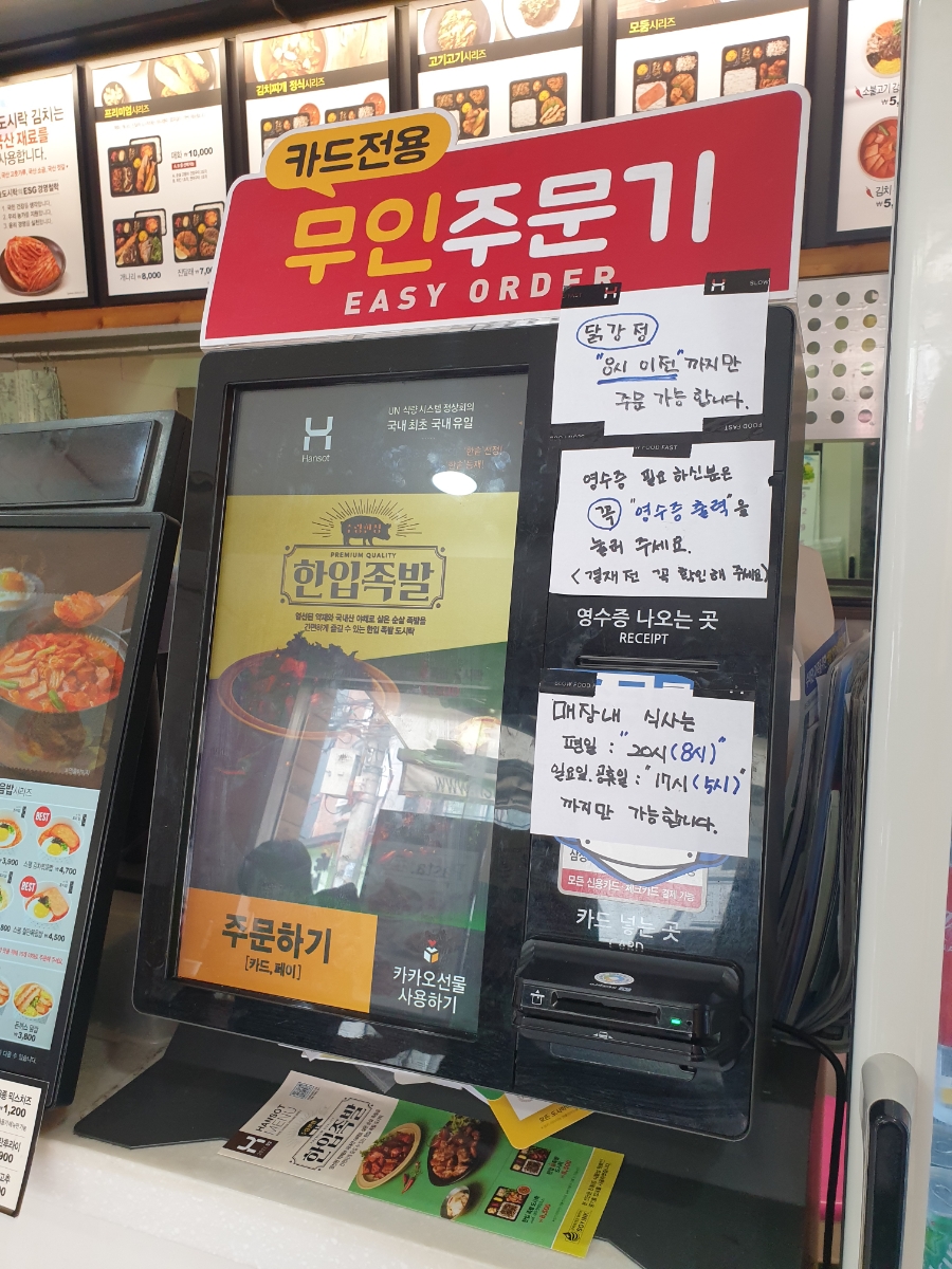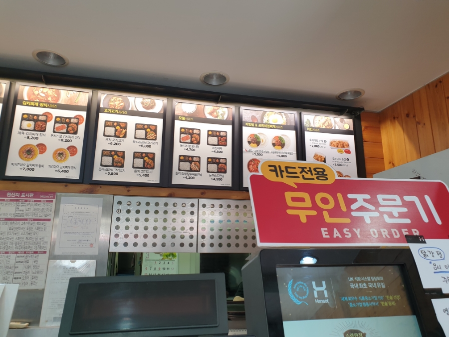 한솥 논현초등학교점은 키오스크를 운영하고 있었는데 메뉴가 많다보니 화면으로 보면서 바로 고르는게 아주 편리했습니다.